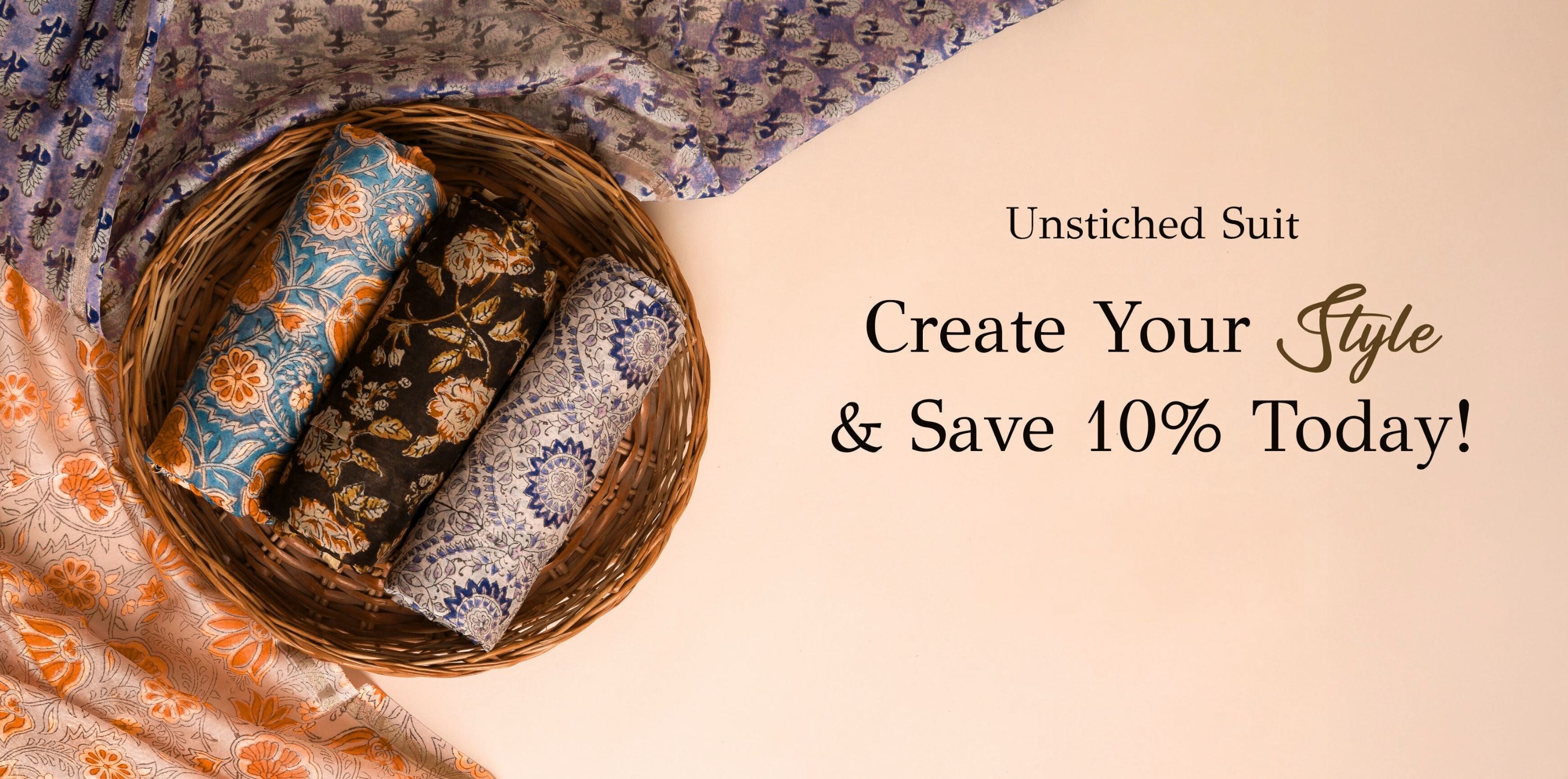 All-over Floral Hand Block Printed Cotton Suit with Malmal Dupatta