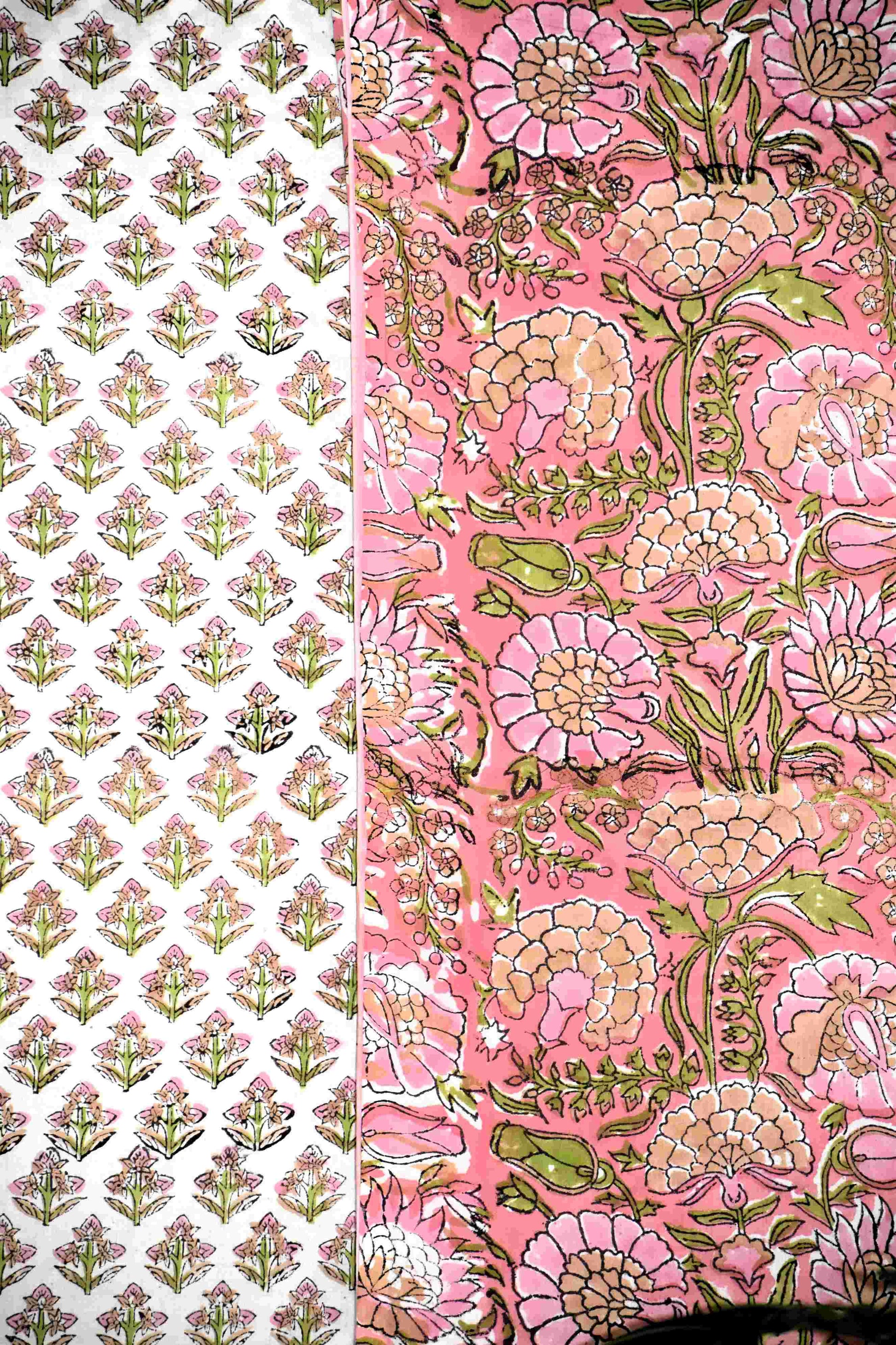 All-over Floral Hand Block Printed Cotton Suit with Malmal Dupatta