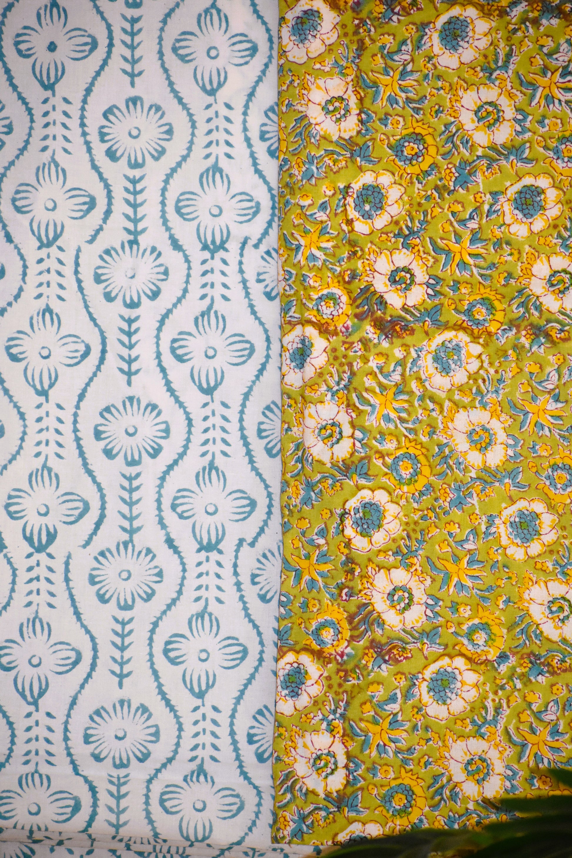 This Hand block printed unstitched suit, featuring a Jaal design is made from soft, breathable cotton, which keeps you cool and comfortable throughout the day. Easy to stitch to your perfect fit, this versatile suit is a must-have wardrobe essential for effortless comfort and graceful everyday wear.