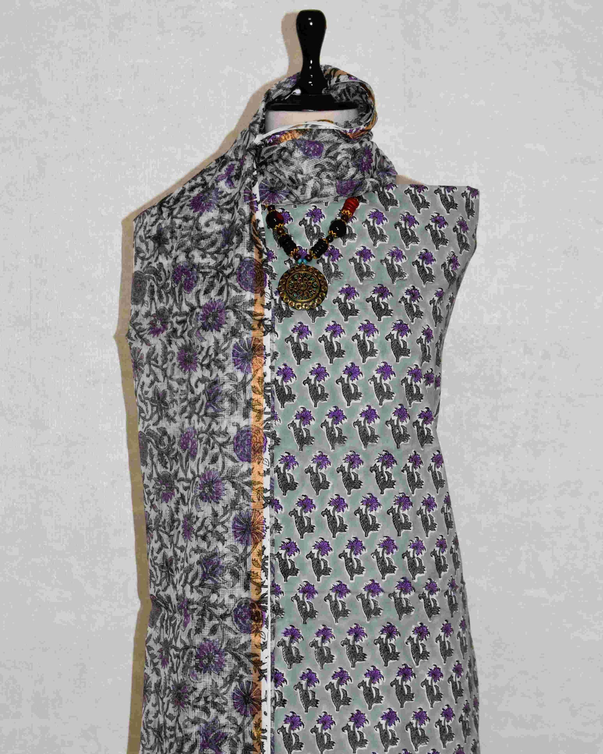 Experience understated luxury with this unstitched block printed cotton suit. Crafted from premium cotton for unmatched comfort, it lets your skin breathe all day long. The exquisite Kota Doria dupatta is airy yet refined, draping beautifully with an elegant flow. Create a silhouette that’s uniquely yours — effortless sophistication for every day.