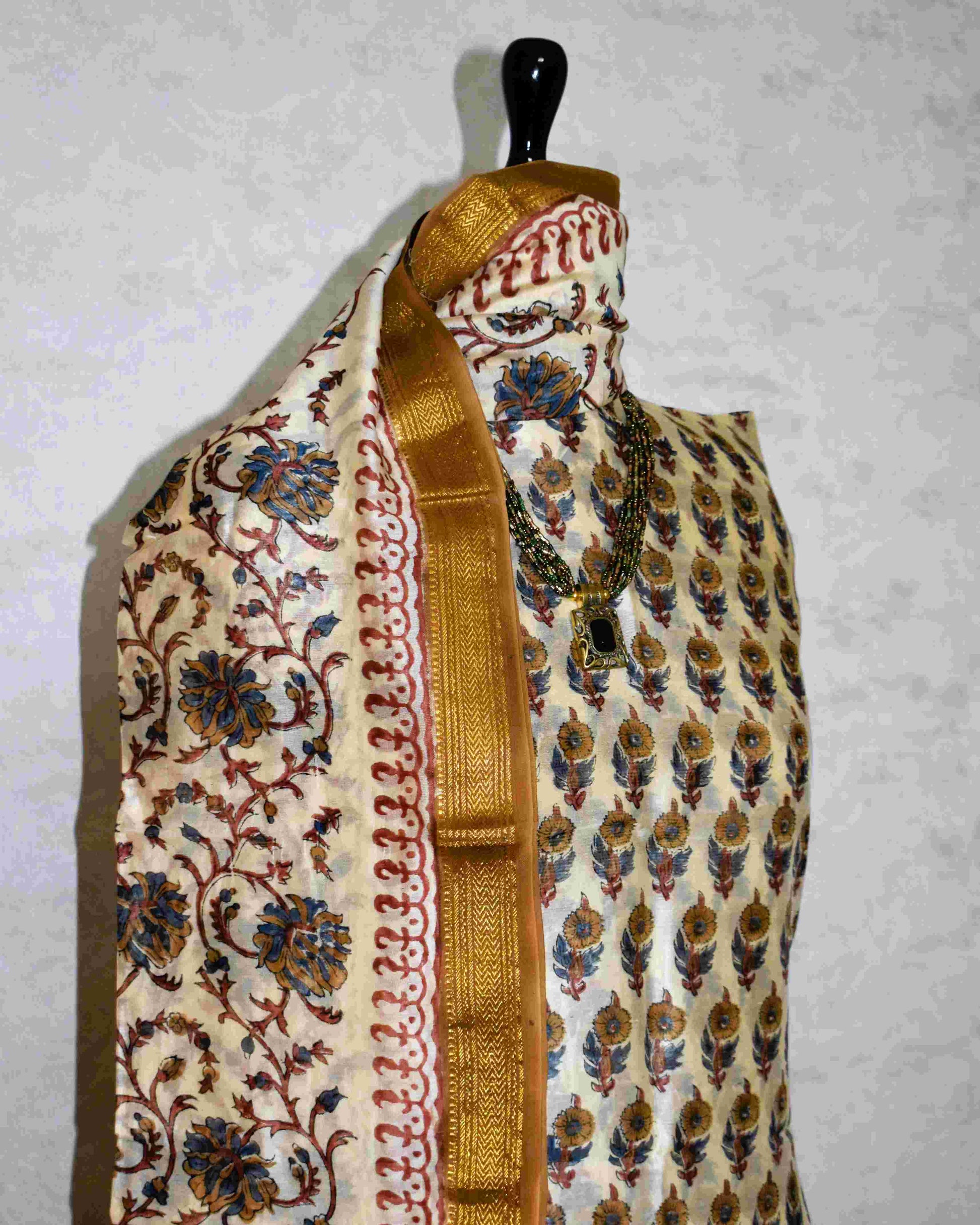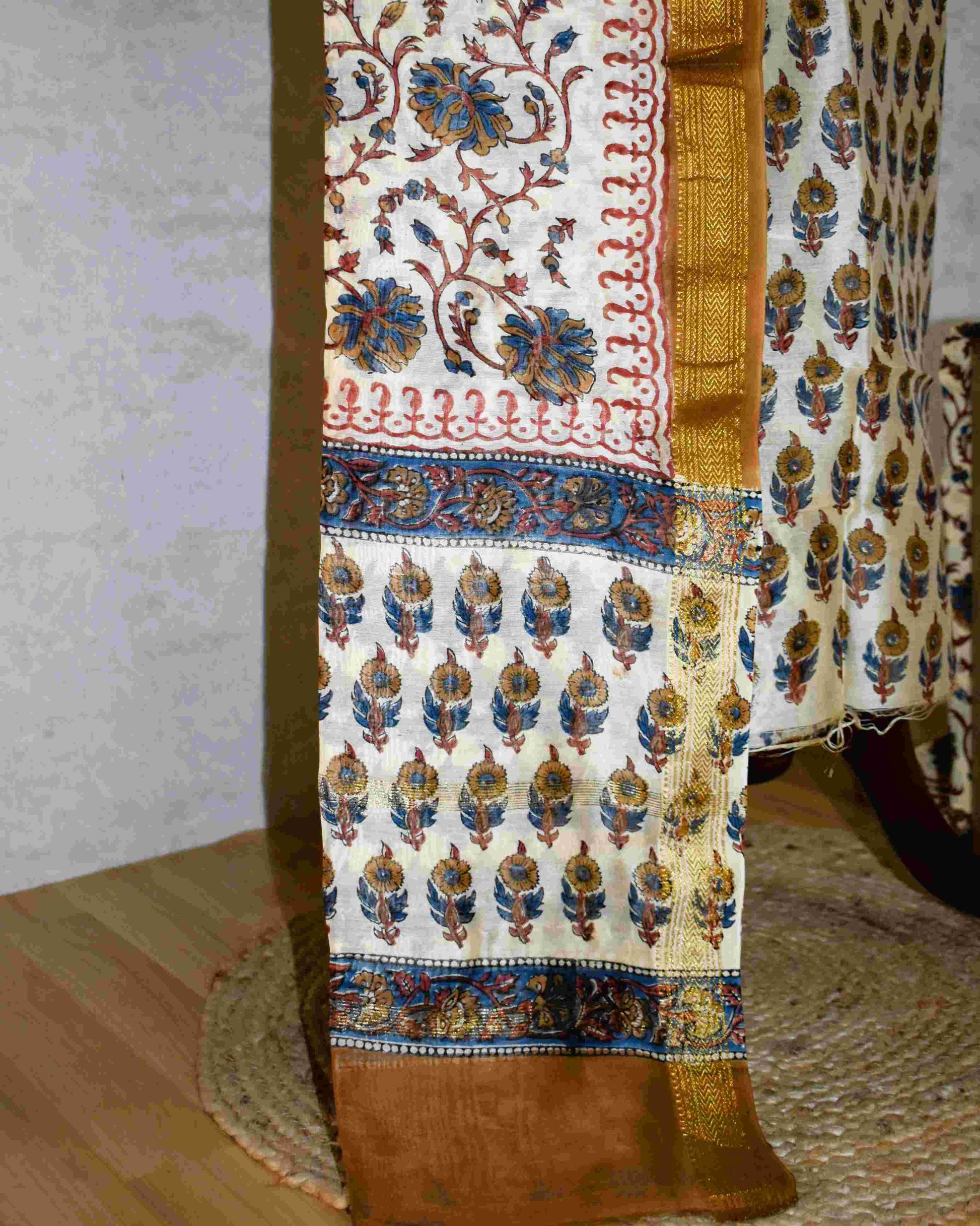 Golden Mustard Bagru Floral Buti Printed Maheshwari Silk Suit Set