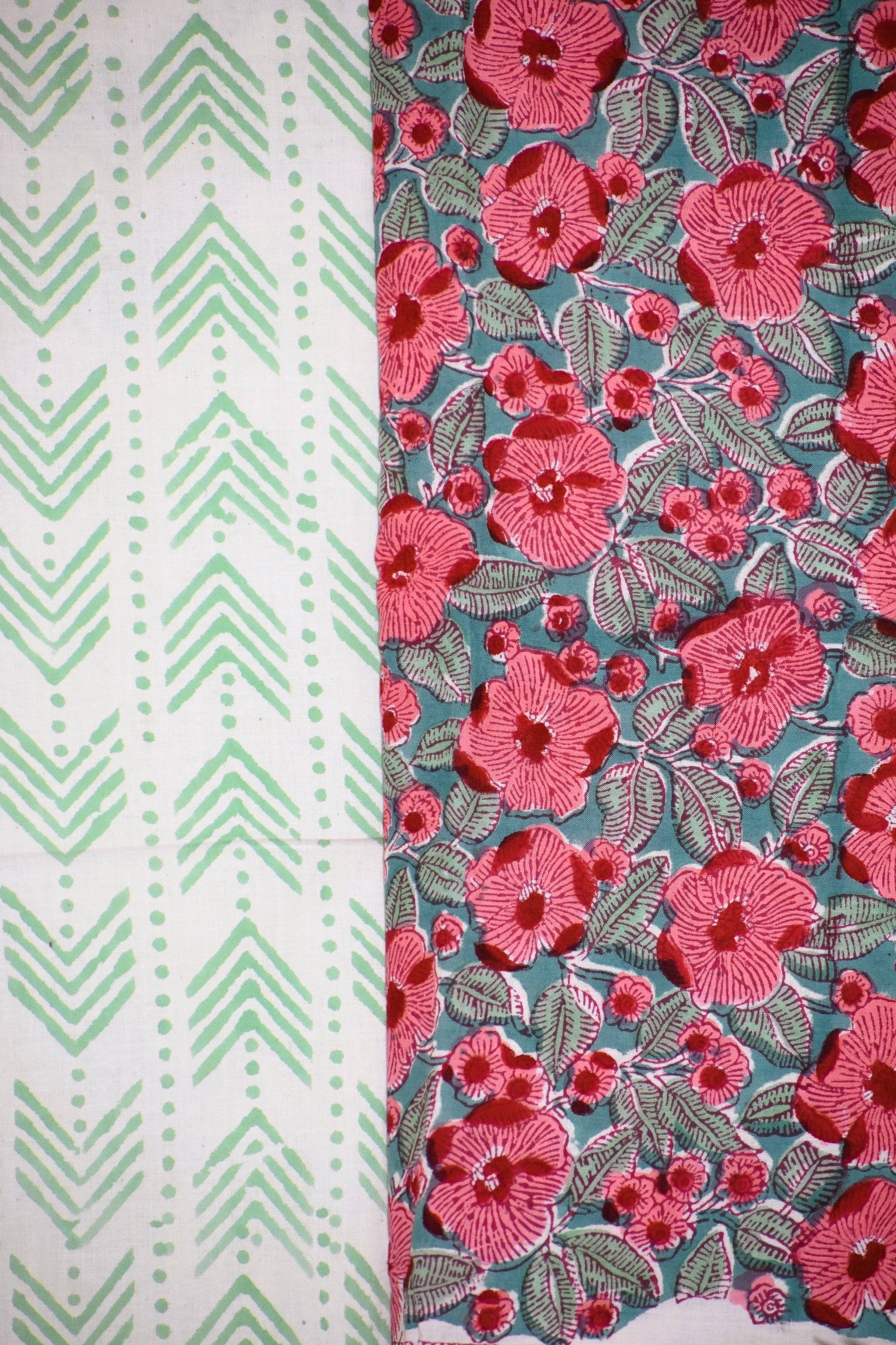 Floral Hand Block Printed Cotton Suit With Pure Chiffon Dupatta