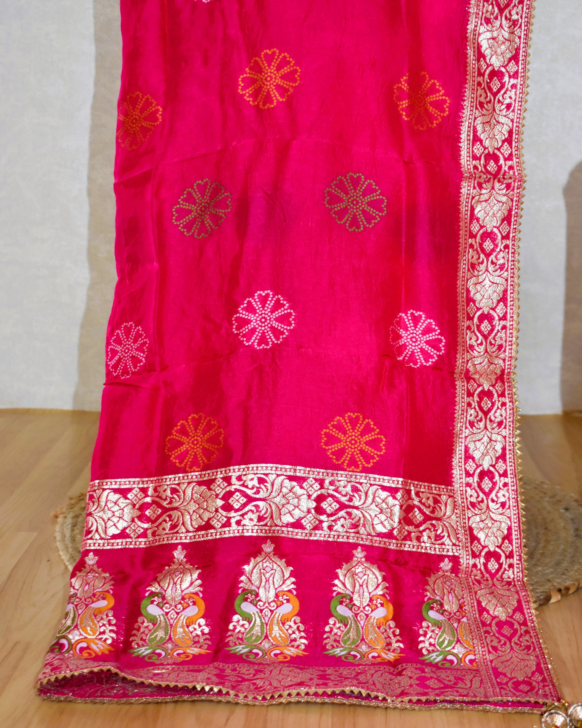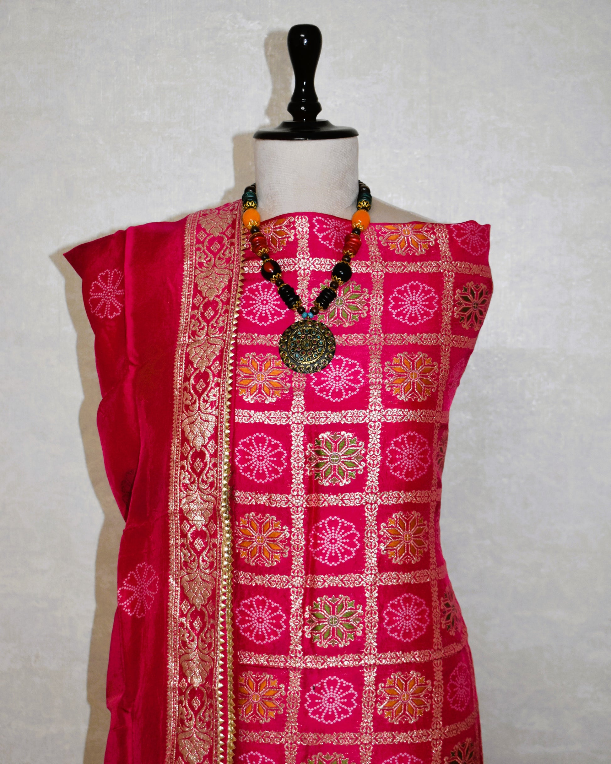 Fuchia Banarasi Dola Silk Suit Set with Dola Silk Dupatta