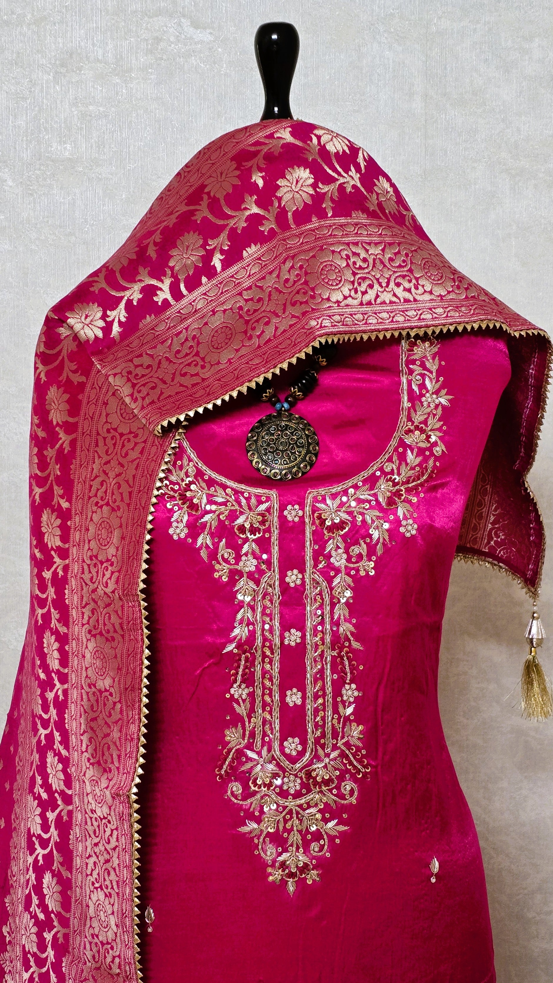 Fuchia Gaji Silk Gota Patti Suit Set with Dola Silk Dupatta