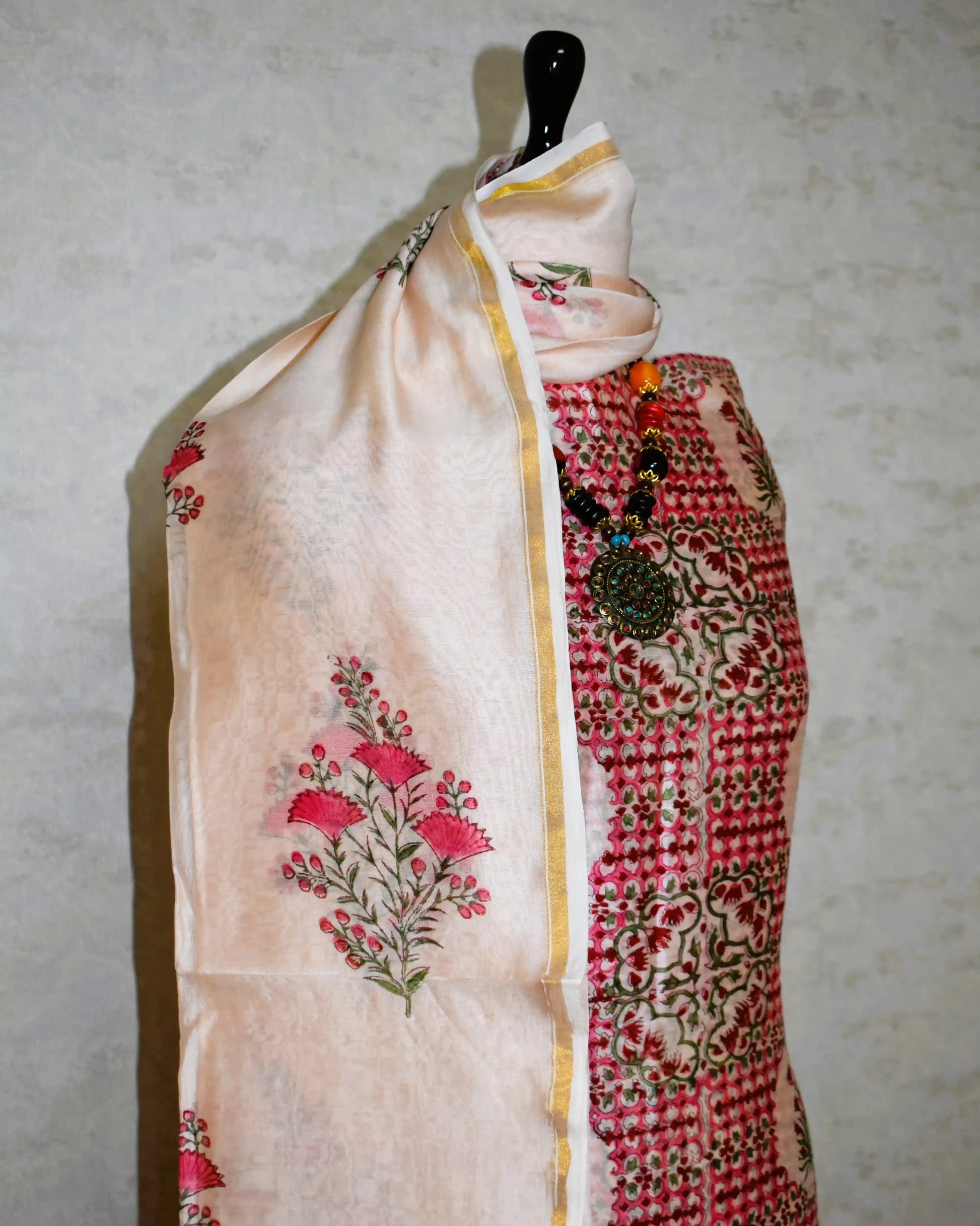 Timeless Red Chanderi Silk Suit with Floral Buta Sanganeri Print