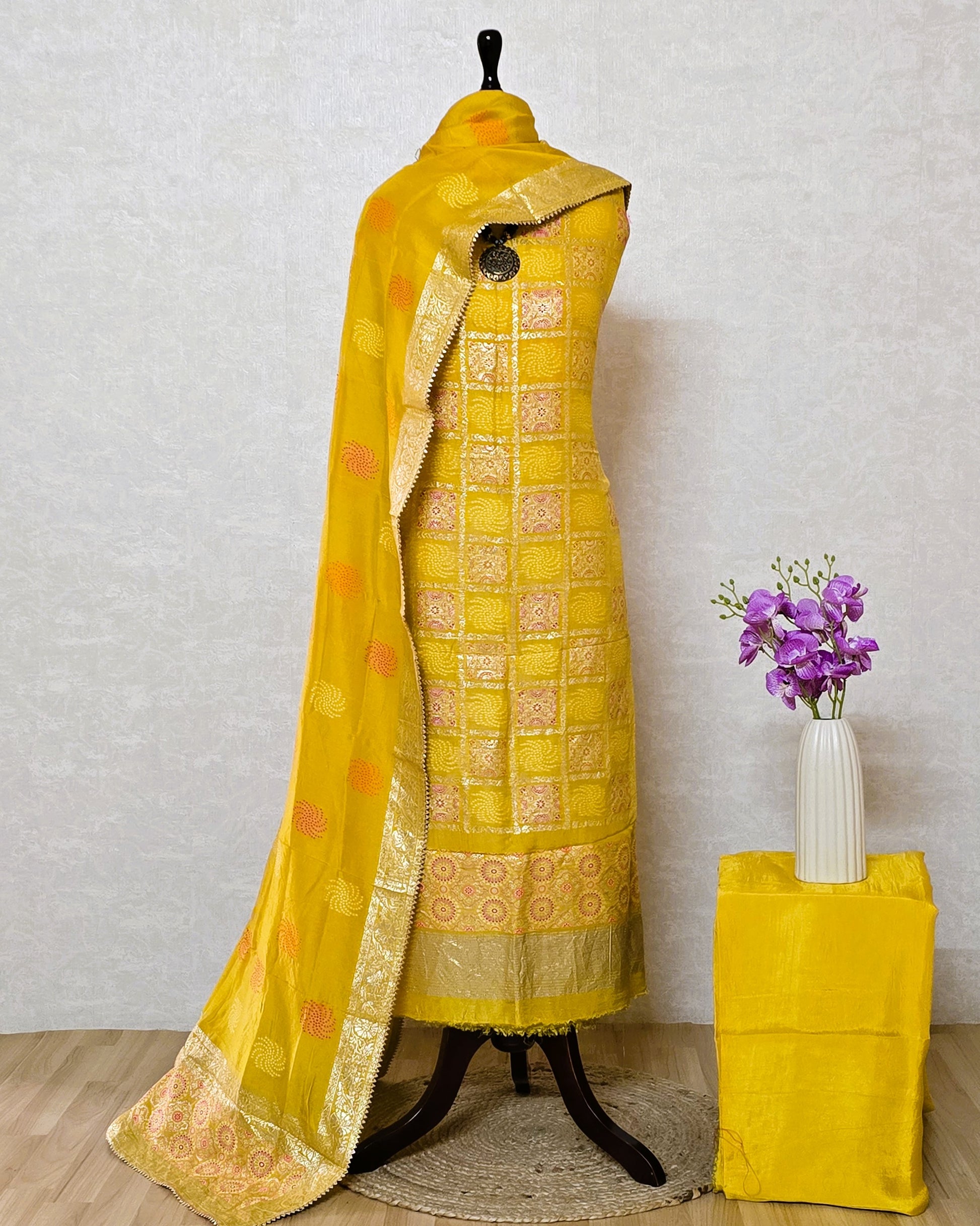 Yellow Banarasi Dola Silk Suit Set with Dola Silk Dupatta